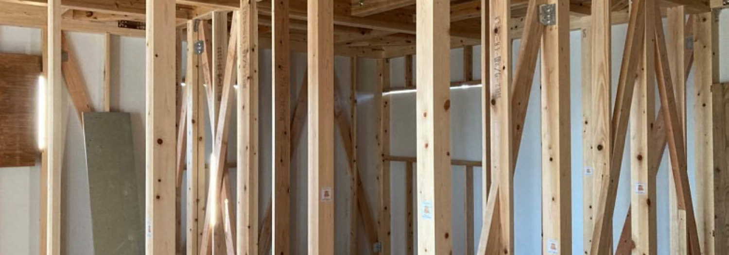 IG STYLE HOUSEで建てる家の構造躯体をブロックモジュールの規格化で組み上げることで大径材を住宅躯体に活用するだけでなく大径材の端材を捨てることなく、仕上げ材活用などへ有効利用することで、この課題の解決を図りました。