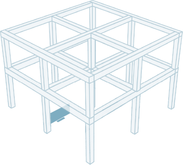 柱と梁のそれぞれの長さや断面サイズを統一し、