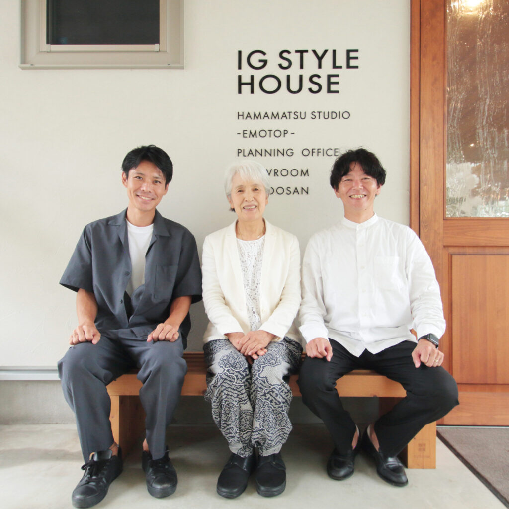 はままつフラワーパークの理事長を務める塚本さんと、アイジースタイルハウス浜松・豊橋マネージャー 佐原、今回寄贈したベンチ・四阿の製作チームを率いた施工管理の芥川が互いの想いを語り合い、対話をしています。