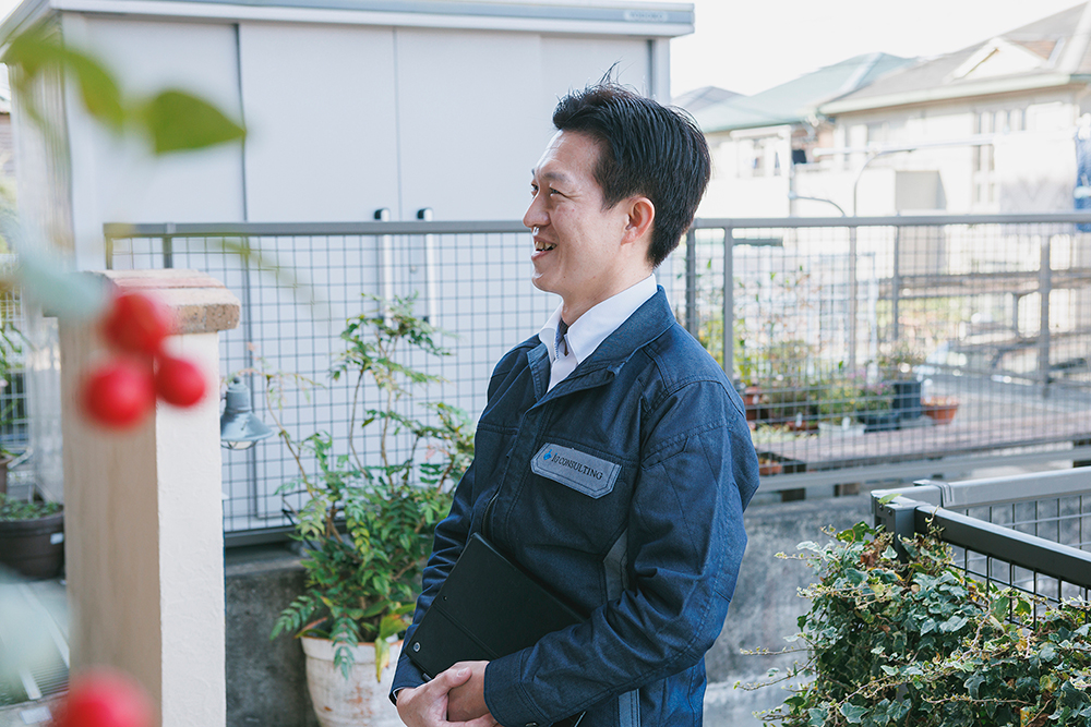 職種紹介 - 株式会社アイジーコンサルティング | 地球に選ばれる営みをつくる会社 採用サイト CONTENTS MENU メッセージ 会社を知る 仕事を知る 社員を知る 取組を知る 働き方・福利厚生 募集要項 企業情報 採用のエントリーはこちら 新卒エントリー 経験者(社会人)エントリー 新卒エントリー 経験者(社会人)エントリー CONTENTS MENU メッセージ 会社を知る 仕事を知る 社員を知る 取組を知る 働き方・福利厚生 募集要項 企業情報 アイジーコンサルティング採用サイト IGCについて 職種紹介 JOB CATREGORY 職種紹介 各事業部の職種をご紹介 法人営業職 快適な住環境を守るパートナーとして。 事業主様とご家族様をつなぎます。 事業主様へご訪問し、白蟻防除の施工や、お引き渡し後の住宅点検代行サービスなどを提案します。事業主様の多くはご家族様へのアフターフォローまで手が届かない多く、フローのビジネスチャンスを機会損失していました。私たちが事業主様とご家族様を繋ぐことでこれからのストック社会に貢献します。 この職種で働く人々 メンテナンス事業部 法人営業 内山 朋香 すべてのことに意味がある。なんでもポジティブに捉えたい。 メンテナンス事業部 マネージャー 山本 康平汰 利用し合う関係ではなく、支援し合う関係で。 住宅メンテナンス営業職 ご家族様宅へご訪問し、 暮らしをアップデートさせてゆく。 法人営業が提携してきた事業主様で新築戸建を建てられたご家族様宅へ訪問し、定期点検を行います。外壁・床下・基礎立ち上がり、建具、設備、配管等の劣化や異常を確認し、必要に応じてメンテナンス工事をご提案いたします。 この職種で働く人々 メンテナンス事業部 住宅メンテナンス営業 石野 伸太郎 若さには若さなりの働き方や組織へ貢献できることがある。 メンテナンス事業部 マネージャー 山本 康平汰 利用し合う関係ではなく、支援し合う関係で。 アフターサービス職 現場で白蟻防除や駆除工事、 その他メンテナンス工事を引き受けます。 カスタマー営業職がご家族様から依頼を受けた住まいの補修・改修工事を担います。住まいのトラブルの多くは、白蟻による家屋の破損そして、外壁や屋根など自然に晒される箇所になります。 この職種で働く人々 メンテナンス事業部 アフターサービス課 主任 鈴木 誠 人前で泣けることを素敵だと思える組織でいたい。 メンテナンス事業部 アフターサービス課リーダー 櫻井 遥哉 周りの期待に応えたい一心で取り組む方が不思議と頑張れた気がする。 建築営業職 新築戸建てやリノベーションをご検討の ご家族様をプロデュース。 注文住宅自社ブランド「IG STYLE HOUSE」またはリノベーション自社ブランド「FULL HOUSE」で、ご家族様へ土地探しから始まり、暮らしの提案からお引き渡しまでの長い時間を一緒に家づくりを進めていきます。設計・コーディネーター・施工管理など多種にわたるスタッフをコントロールして、家づくりをプロデュースいたします。 この職種で働く人々 建築事業部 マネージャー 佐原 康隆 迷った時は、心が震えるほうへ。 建築事業部 建築営業 主任 武内 貴珠子 利益に向き合う。ご家族様を裏切らない為に。 設計職 世界に一つだけの住まいを プランニング。 設計職は、お客様の要望に沿った間取りを計画する「プランニング」や、図面作成・構造計算・役所への書類申請などのマネジメントを行っています。家づくりのイメージをプランとして具体化し、実際の形にするために図面として形にするお仕事です。営業と共にご家族様とお打ち合わせをしたり、現場で施工管理と計画図面と実際の収まりを確認・調整しながらデザインコントロールしていきます。 この職種で働く人々 建築事業部 設計 主任 山本 清尊 感性で判断しても、意外と正しく着地する。 施工管理職 現場監督として、 住まいの品質と協力業者の安全を。 家が建つまでの約半年間で様々な工程で多くの協力業者が関わります。その協力業者の安全を確保しながら、品質・予算・工期のマネジメントを行います。お客様・営業・コーディネーター・設計・協力業者と工事に関する段取りを行い、現場がスムーズに進行していくための指揮者のような役割を担っています。 この職種で働く人々 建築事業部 施工管理 芥川 健斗 摩擦は、理想へ引っ張り合っている証拠。 不動産営業職 中古住宅の再販価値を向上させ、 ニーズある住まいを再度市場に流通させる。 お付き合いあるご家族様の住宅売買を手掛けます。このビジネスのコアコンピテンシーは私たちが長年培ったメンテナンス力です。アイジーコンサルティングの住宅メンテナンス力を活かし、ご家族様の中古住宅の市場適正価格を算出し、適切な修繕を施し再度、不動産市場に流通させていきます。中古住宅市場へのニーズに最適解をもたらし、カーボンニュートラル社会に貢献してまいります。 この職種で働く人々 不動産営業 村橋 重嘉 競い合うよりも支え合うために、会社ってあるんじゃ